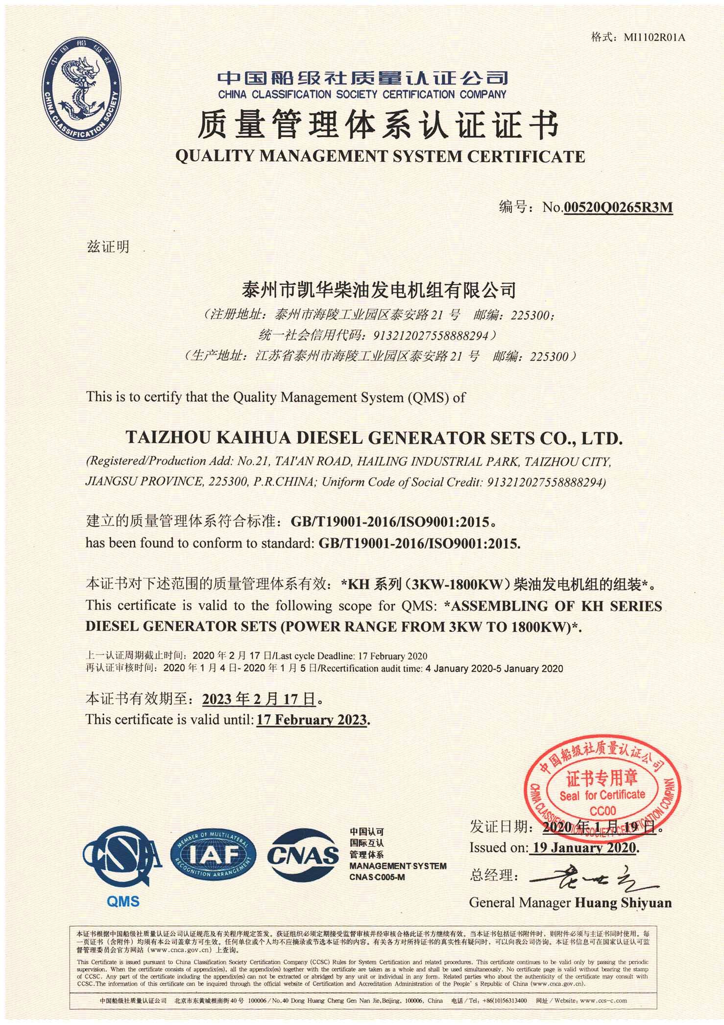 泰州市凱華柴油發電機組有限公司創建于2003年,是一家集柴油發電機組燃氣發電機組的研發、生產、銷售為一體的高新技術民營企業,公司座落于“漢唐古郡,淮海名區”,具有“鳳凰城”美稱的祥泰之州——江蘇省泰州市,地處中國經濟最發達的長三角經濟圈,水陸空立體交通,地理位置十分優越。公司目前注冊資本金11800萬元人民幣,生產基地占地六十畝,現有各類高素質員工一百多名,專業技術人員達46人,其中高級技術人員16人,年銷售額近6億元。 公司主營產品:3~3000KW陸用柴油發電機組,15~600KW移動拖車電站,12~1000KW船用應急柴油發電機組,各種靜音型、中高壓、多機并聯、燃氣等特種機組以及進口系列柴油發電機組,可滿足不同客戶的一切電力需求,還可滿足用戶不同電壓、不同頻率的要求。凱華公司是康明斯品牌的授權代理商,專業生產供應康明斯柴油發電機組。